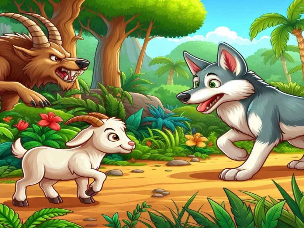किसी जंगल में एक बकरी अपने बच्चे गोलू के साथ रहती थी। गोलू बहुत शरारती था। उसे सारा दिन बाहर खेलना अच्छा लगता था। एक दिन वह खेलते-खेलते जंगल की ओर निकल गया। बकरी ने गोलू को बाहर नहीं देखी तो वह परेशान हो गई। वह तेजी से जंगल की तरफ भागी।