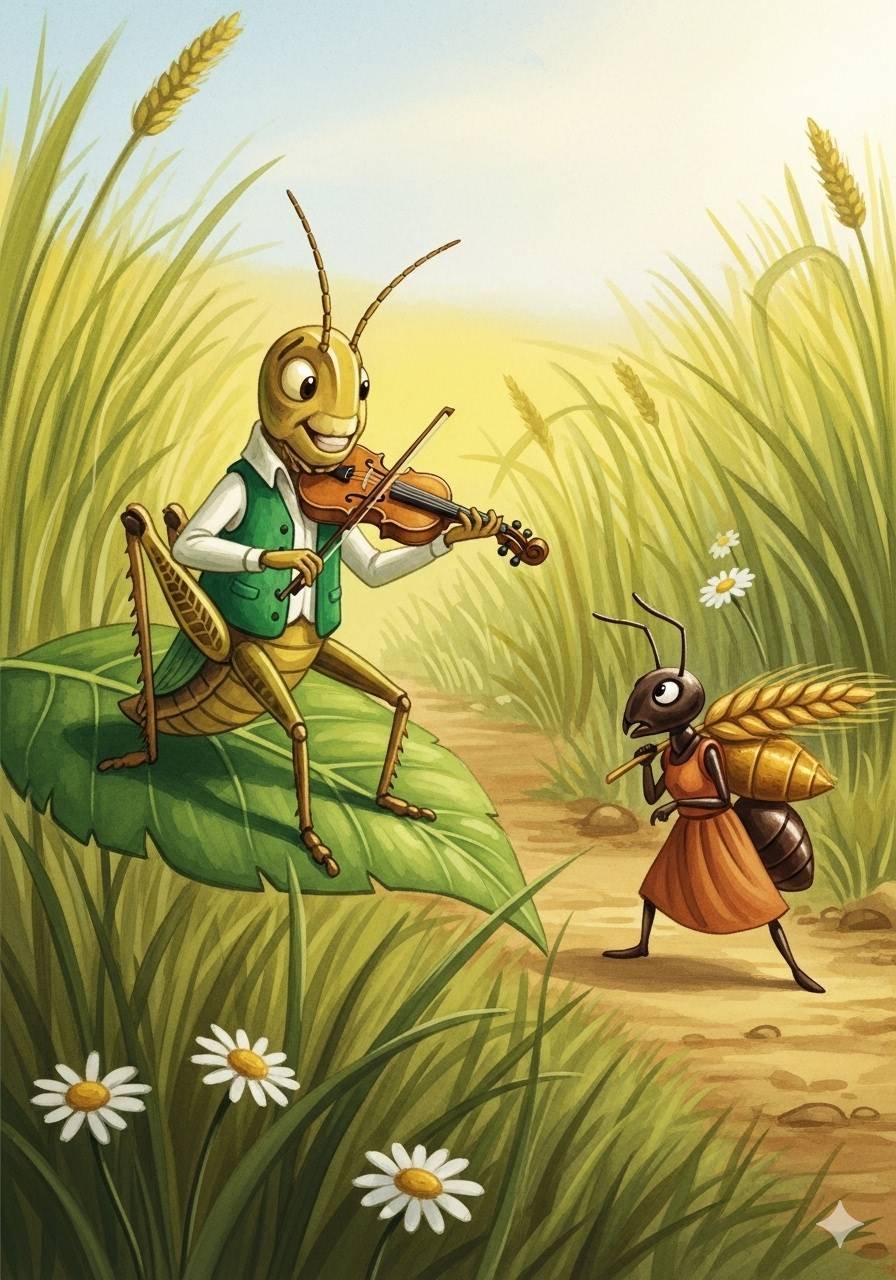 टिड्डे ने चींटी से कहा, क्यों इतनी मेहनत करती हो। आओ तुम्हें गाना सुनाऊँ।