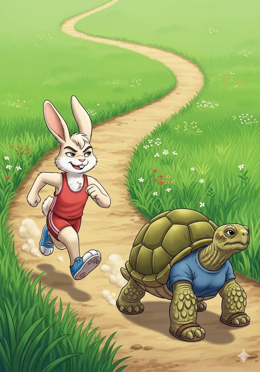 किसी नदी के किनारे एक घमंडी खरगोश रहता था। वह बात-बात में सबको रेस लगाने के लिए कहता था।